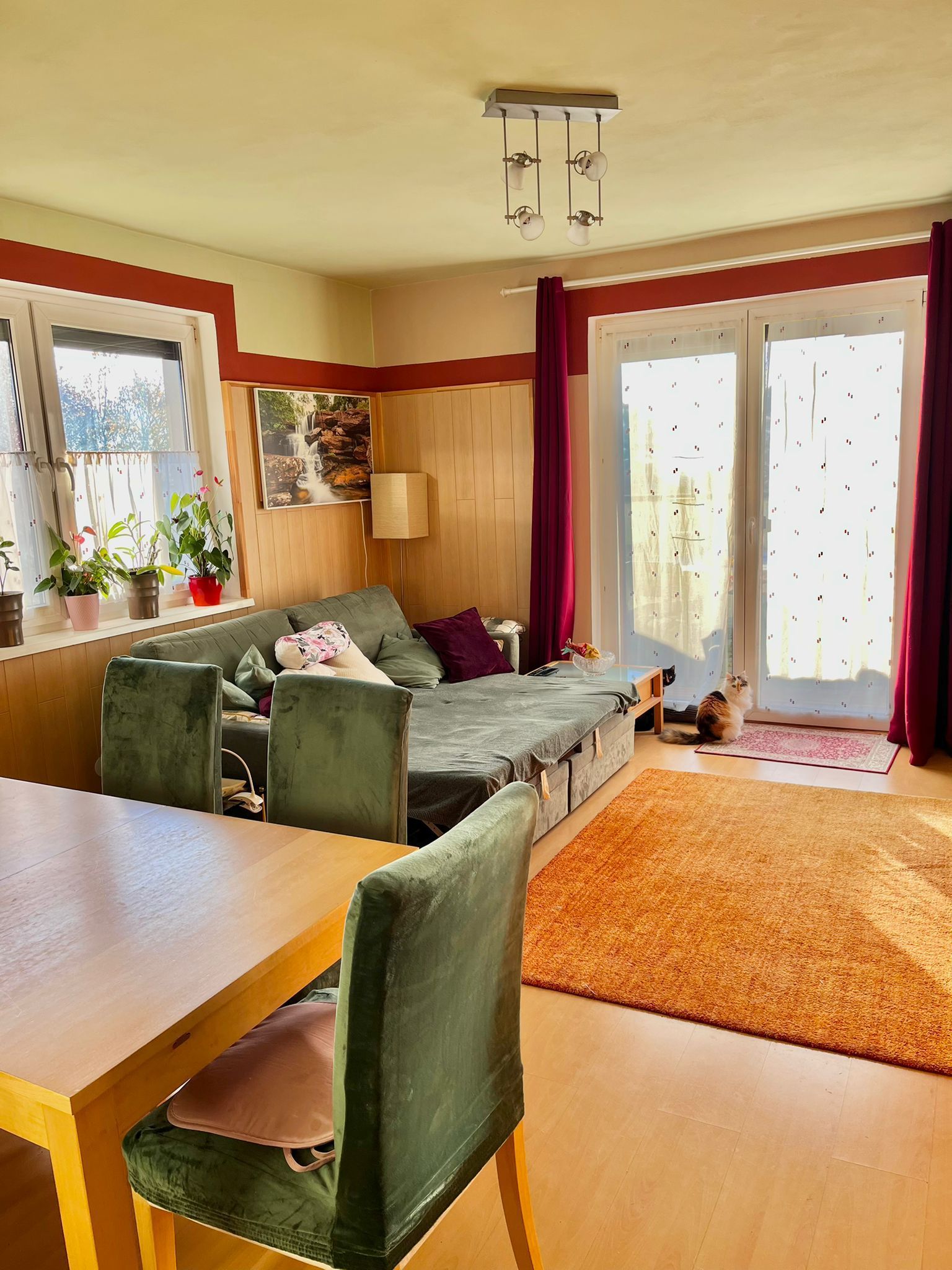 Als Besonderheit punktet neben einer Küche, einem Wohn- & Essbereich und einem modernen Badezimmer, ein beheizbarer Schwedenhofen im Wohnzimmer, der durch Holz und Holzbriketts beheizt werden kann.